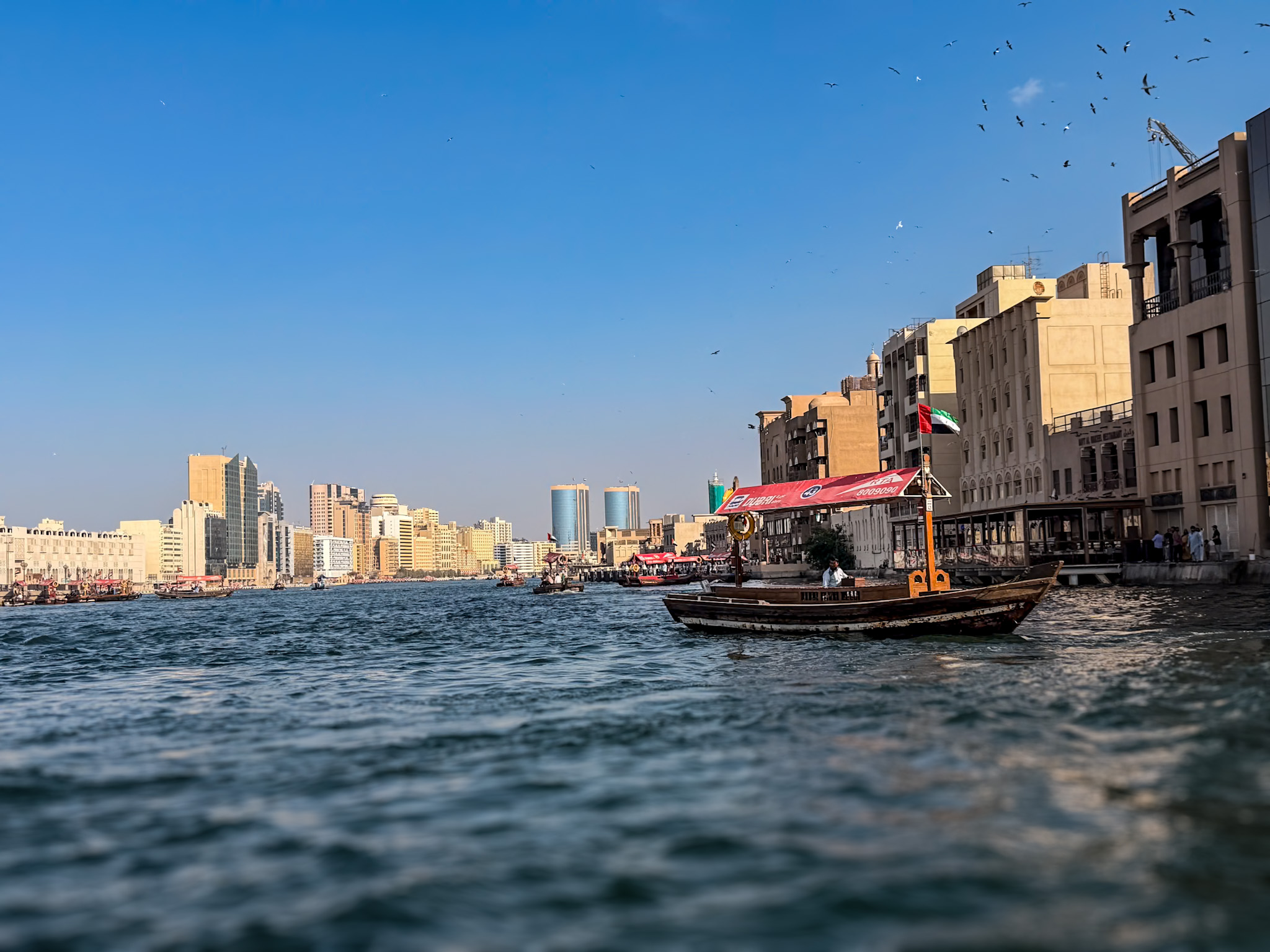This makes it the quickest way to reach areas like Old Baladiya Street and nearby markets. Instead of circling the creek by car, you step onto a boat, cross the water, and walk straight into busy shopping streets.